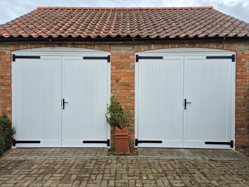 - Pair of manual timber up and over doors - Pair of manual timber up and over doors